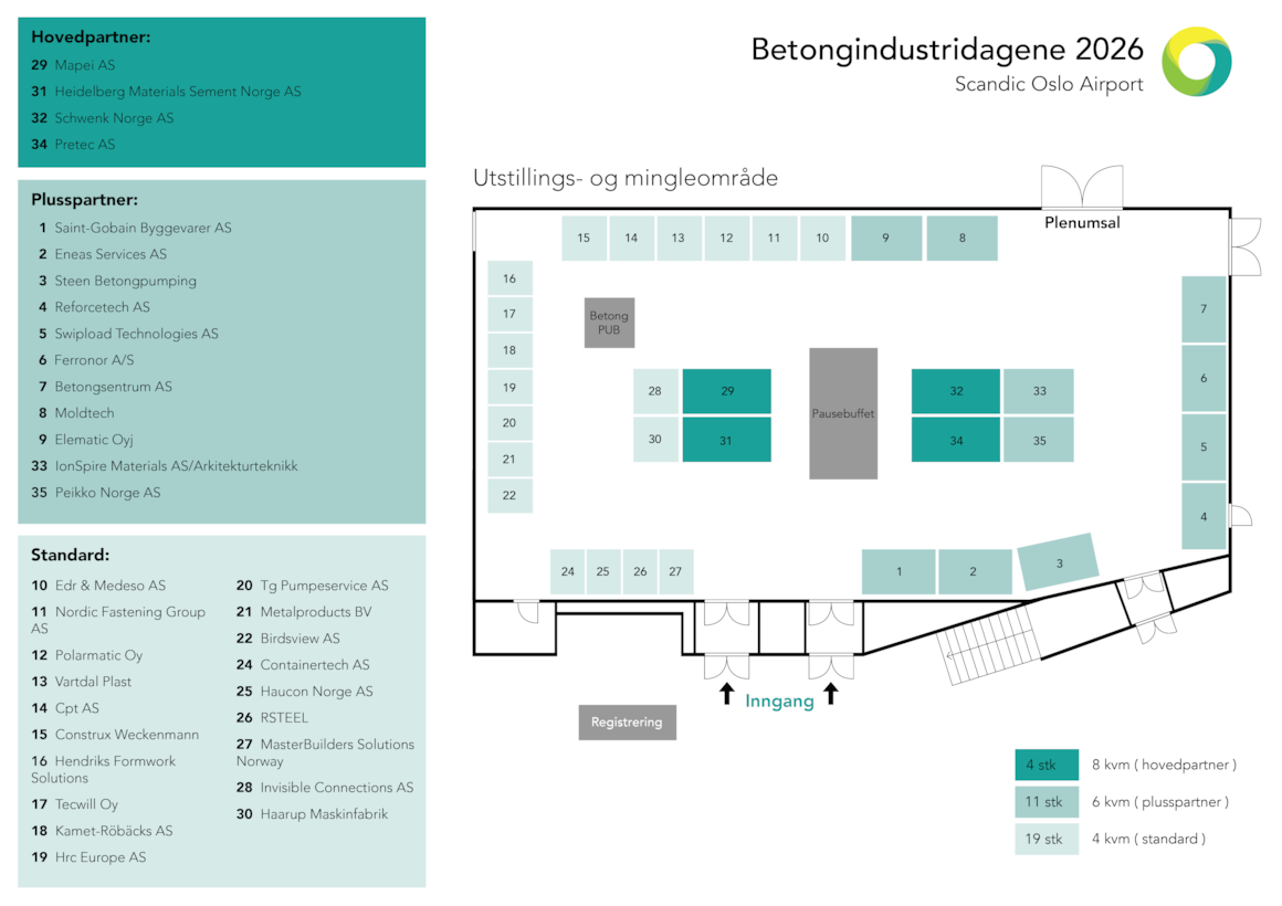 *Plassering i utstilllerområdet settes opp av Betong Norge basert på påmeldingen.